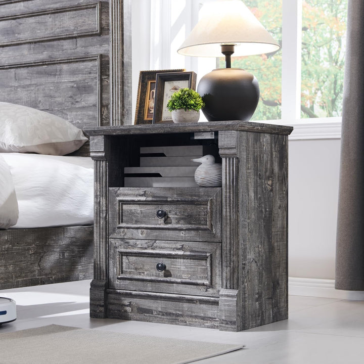 26" Nightstand with Charging, 23.6" Farmhouse Table Open Shelf & 2 Drawers