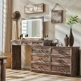 - Spacious Makeup Vanity Size: This large vanity set measures 69.5" W x 15" D x 53.5" H and includes 3 visible drawers, perfect for storing jewelry, trinkets, or makeup tools for easy access. The 6 large storage drawers, measuring 21.5" W x 11.7" D x 5" H, offer ample space to organize cosmetics, books, and personal items, ensuring everything stays neatly arranged. The spacious countertop can even double as a bedside table