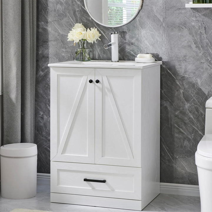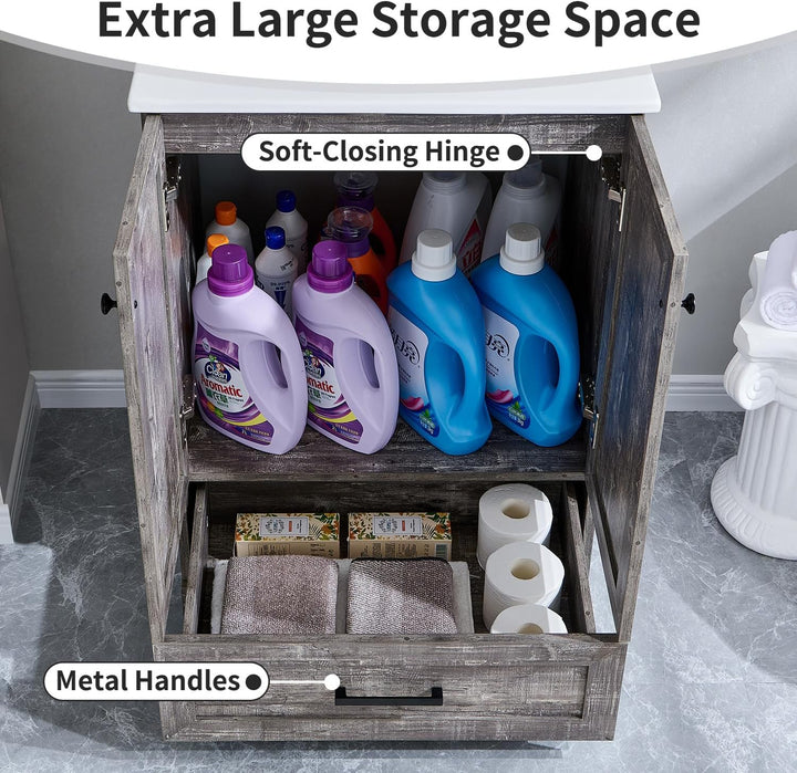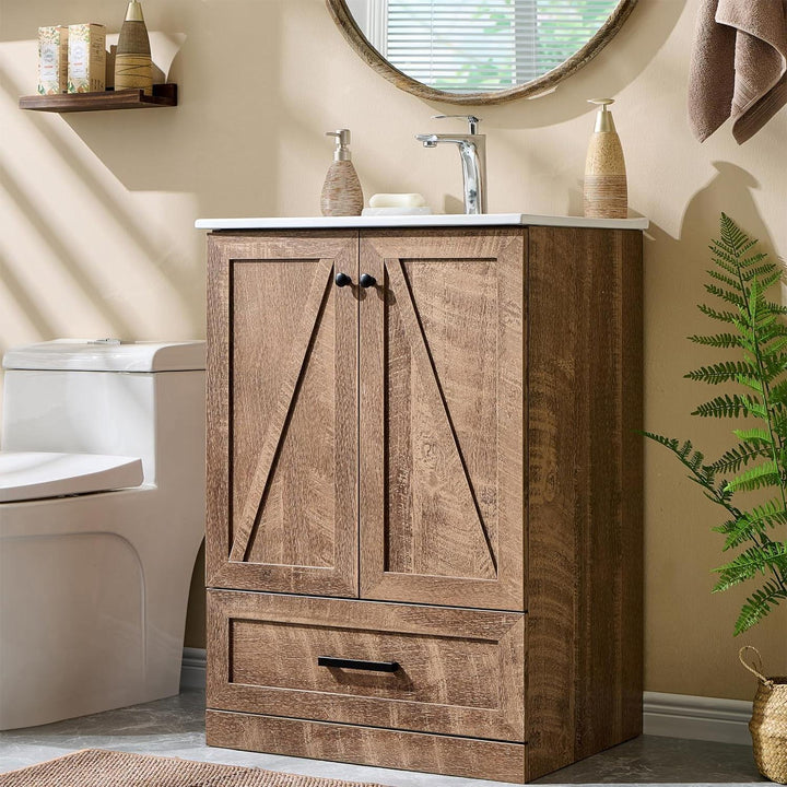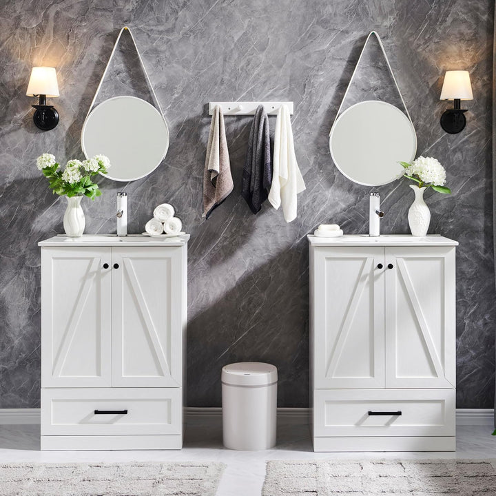 Athletgo 24" Farmhouse Bathroom Vanity with Sink, Bathroom Dresser with Large Storage Drawer
