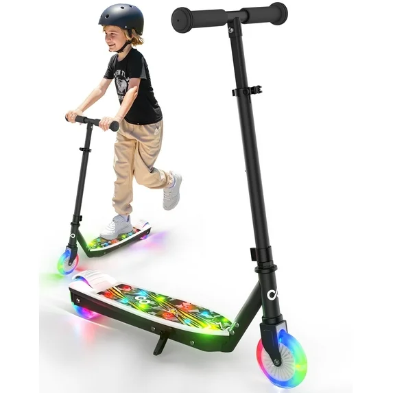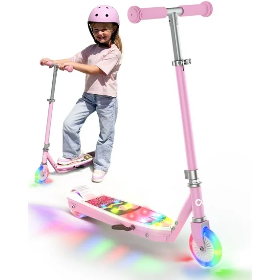 This kid electric scooter is designed for children aged 4-8 years old, equipped with cool luminous wheels and atmosphere lights. The kids scooter features LED flashing light up wheels, no batteries needed. Making every ride fun and attractive, allowing children to ride safely at night while showing their personality.