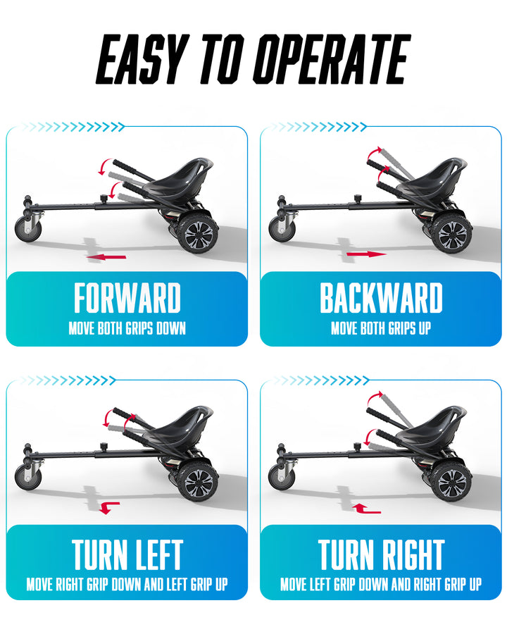 MIHOVER Adjustable HoverKart Self Balancing Scooter Seat Attachment, Balancing Scooter Go Kart Accessory for 6.5" 8" 10" Hover Board (Hoverboard not included)