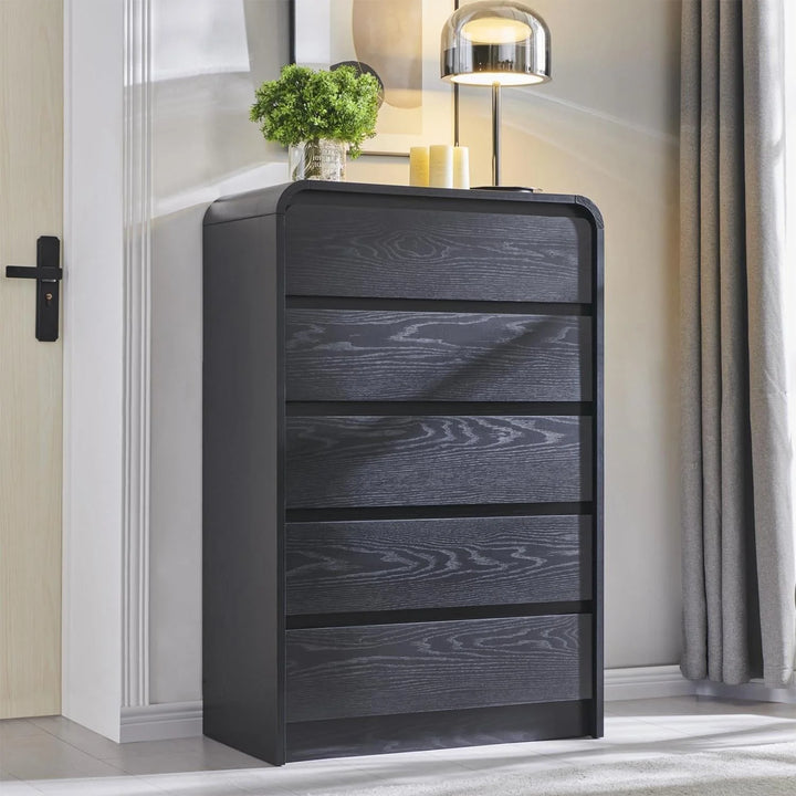 Modern 5 Drawer Vertical Dresser - 45'' Wood Storage Cabinet with Assembly, Chest of Drawers for Bedroom & Living Room