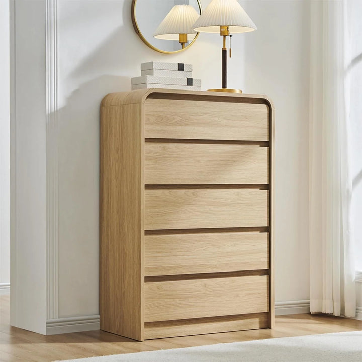 - Mid-Century Modern Design: This vertical dresser showcases a unique bentwood design that blends elegant lines with a smooth, textured surface. The curved profile and smooth rounded corners add a touch of warmth and sophistication to your home, complementing both modern and classic styles.
