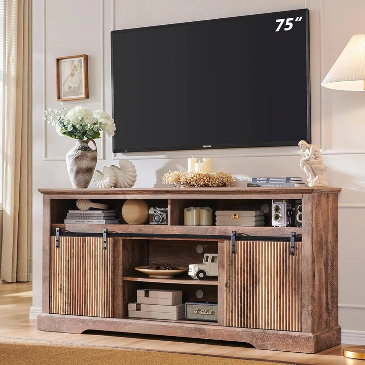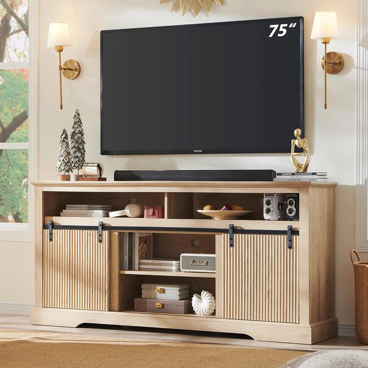 TV Stand for 75" TVs with Sliding Door, Adjustable Shelf & Storage, 32"Tall Modern Media Console for Living Room